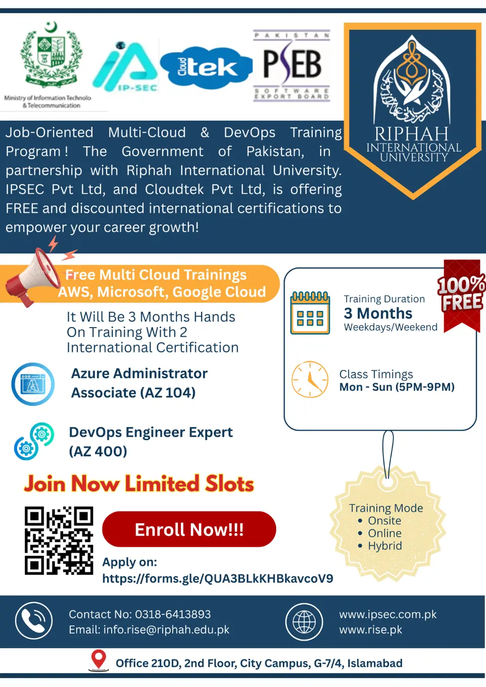RIPHAH International University in JV with IP-Sec & NorthTech Solutions has joined hands with Pakistan Software Export Board – Islamabad (PSEB), to deliver the following training and certifications duly sponsored by Pakistan Software Export Board for Information and Communication Technology Graduates, Information Technology Professional working in Public or Private Departments and Organizations.